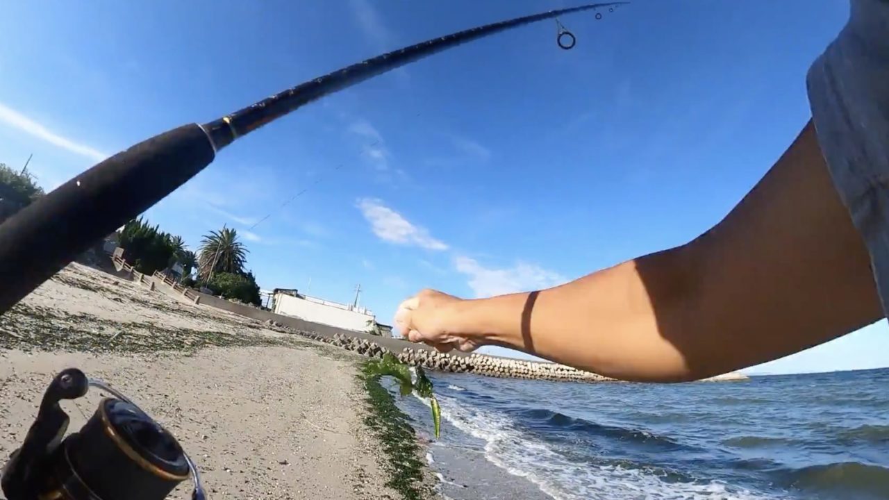 無理に遠投しなくても釣れる場所ですが、潮が効いたタイミングでしっかりルアーを通せるロッドが釣果を伸ばします。
