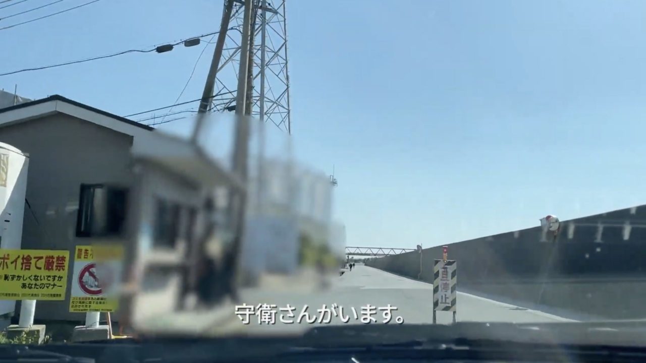 車は工場の近くにある、河川敷のスペースに停めることになります。